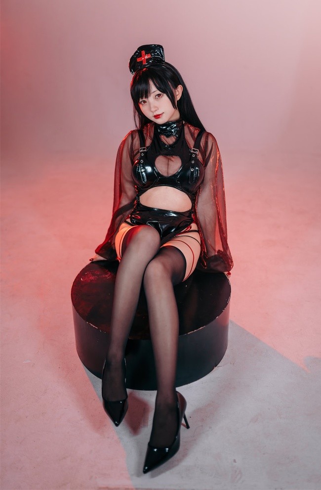 作品特点:猩红护士系列是花铃对护士角色的一次大胆尝试。与传统的护士形象不同,她选择了鲜艳的红色作为主色调,象征着热情和生命力。服装的设计既保留了护士制服的经典元素,又加入了一些现代和时尚的元素,使得整个造型既复古又前卫。
