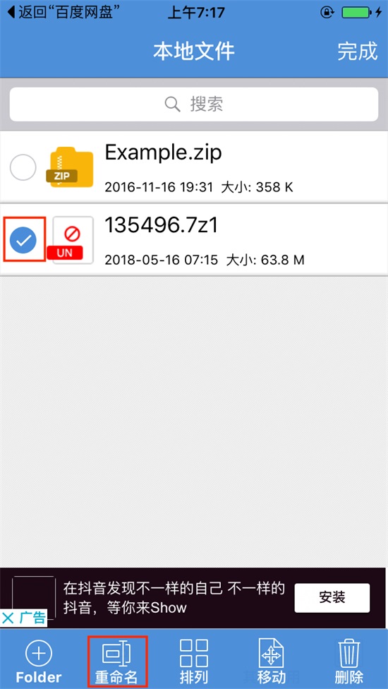 第七步、拷贝完成后会自动切换到iZip应用的窗口,选择右上角编辑按钮